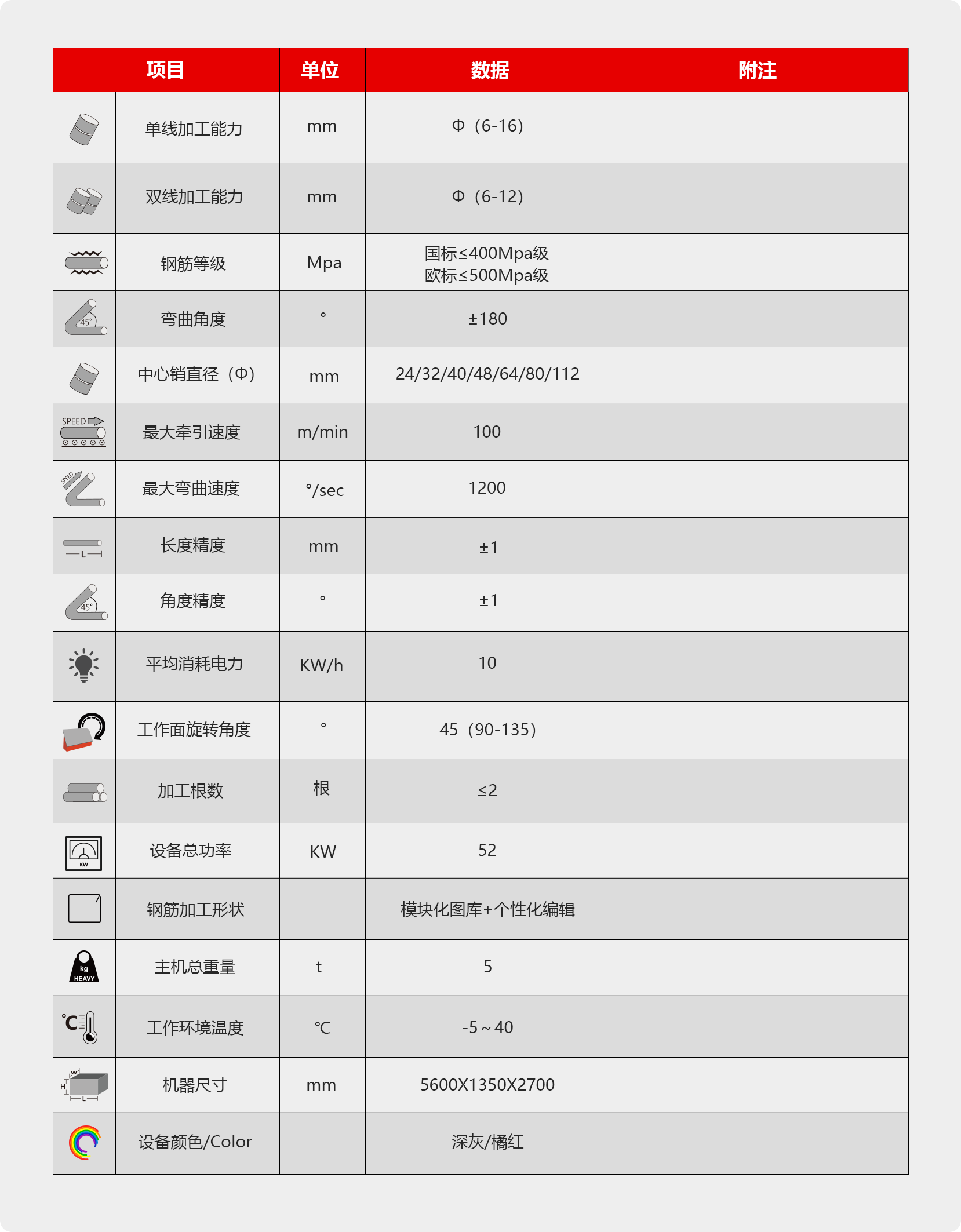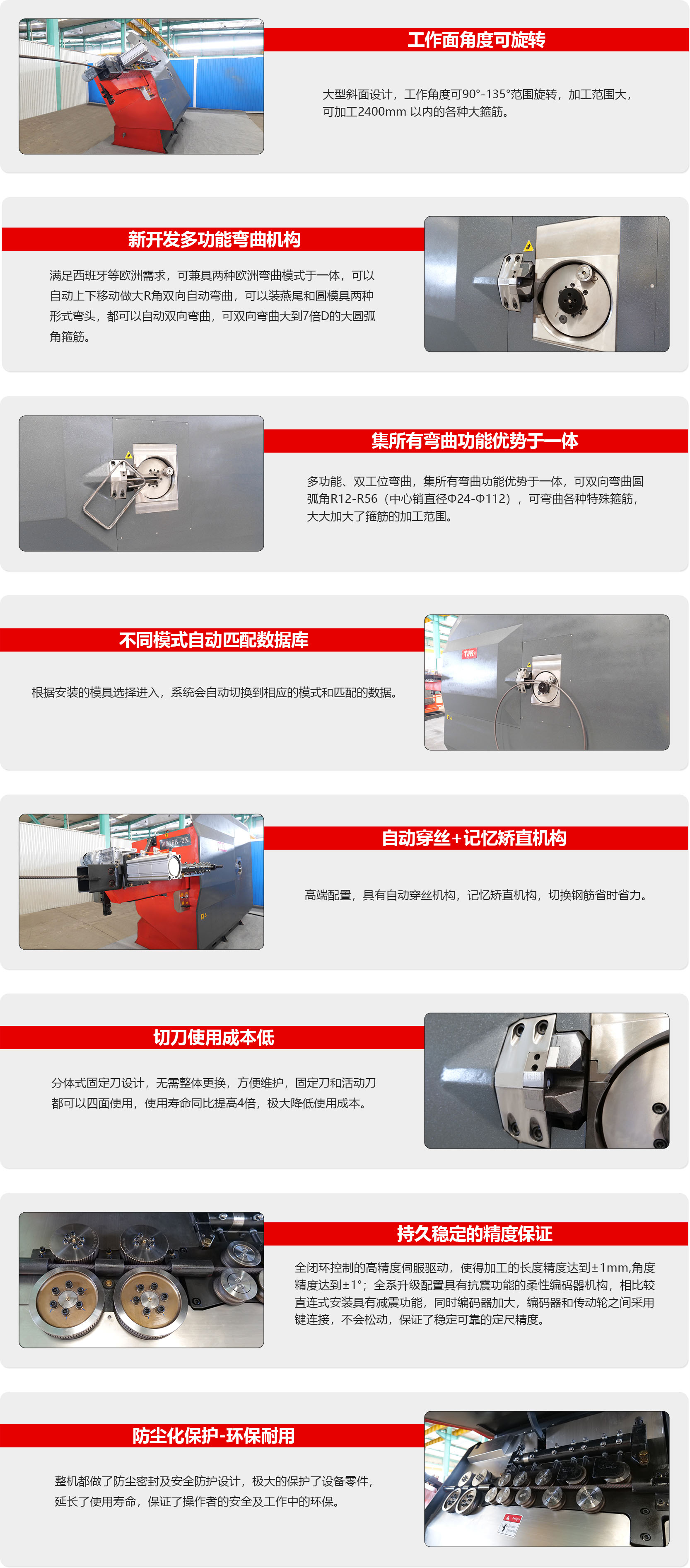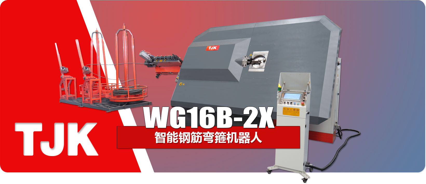 WG16B-2X智能钢筋弯箍机器人是一台大型盘条钢筋全自动化箍筋生产设备, 可加工单线6-16(mm)、双线6-12(mm)的冷轧及热轧高强度盘条钢筋,主机工 作角度可以调整,加工范围广,大到可以满足加工对角线2400mm的大型箍筋,可 广泛满足国内、国际市场需求。