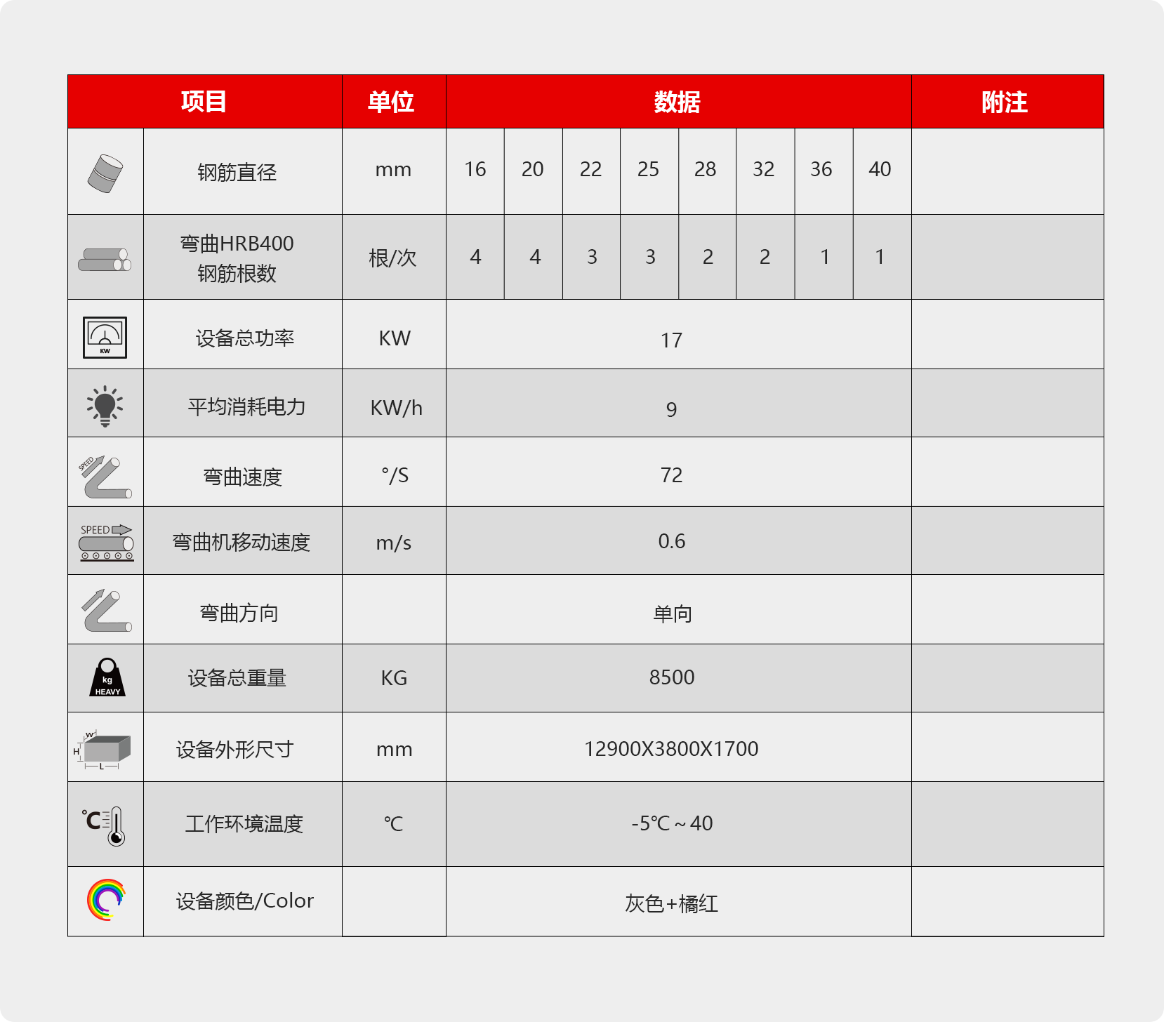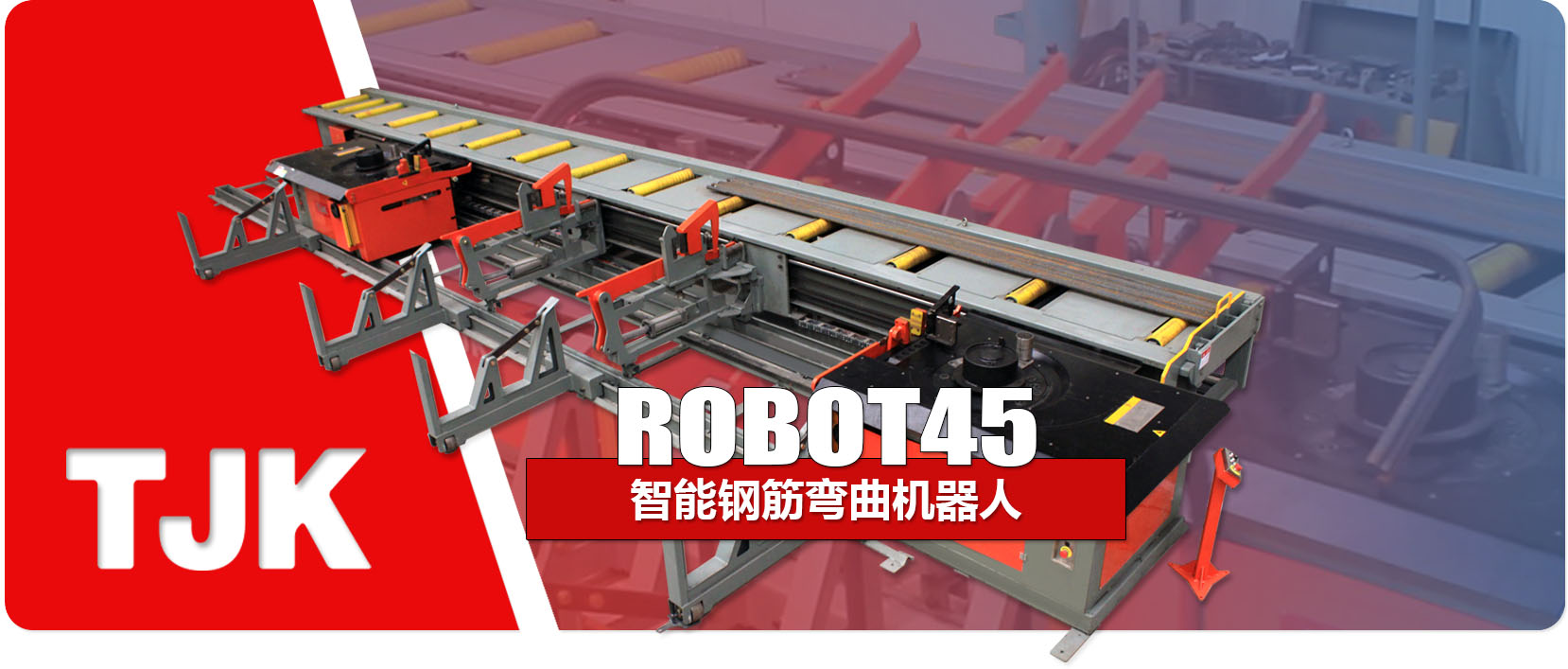 ROBOT45智能钢筋弯曲机器人可将定尺切断后的钢筋弯曲成正方形、矩形、板筋、 U形筋等不同形状的设备,可加工直径16-40的钢筋,自动化程度高,操作简便易行,尤 其适合于大直径、大半径的钢筋加工。