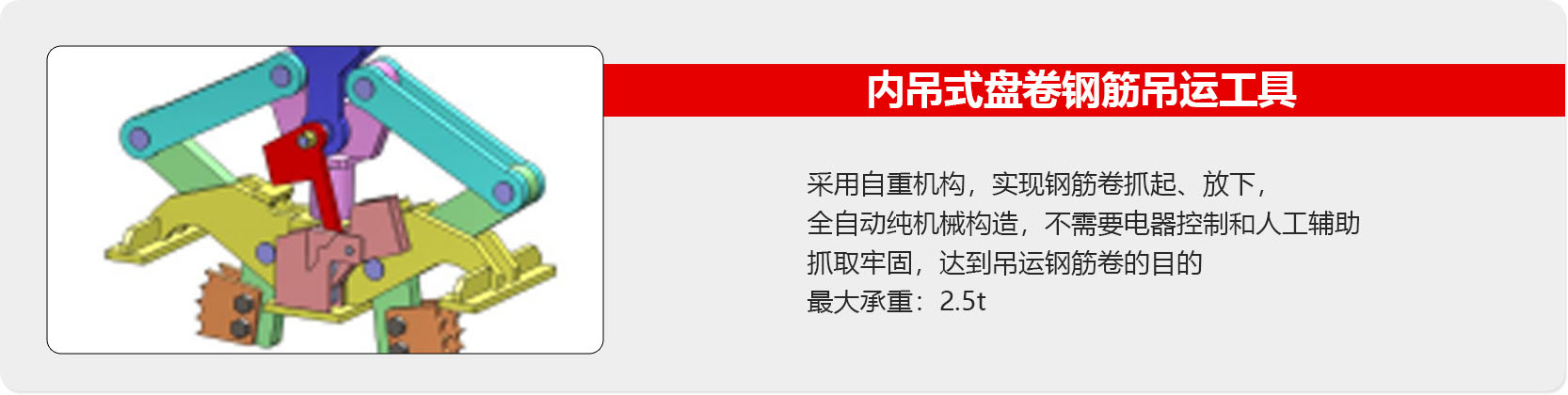 当前位置:首 页 > 产品展示 > 智能冷轧带肋钢筋机器人 > 智能冷轧带肋钢筋机器人 > 内吊式盘卷钢筋吊运工具