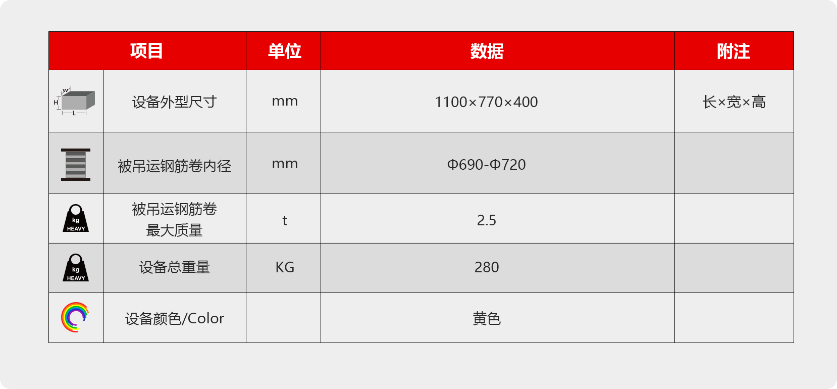 产品介绍:内吊式盘卷钢筋吊运工具 抓取钢筋卷内孔,自动吊取、吊运、摆放钢筋卷 产品型号描述:DN2.5内吊式盘卷钢筋吊运工具,此工具为内吊式钢筋卷吊用工具。
