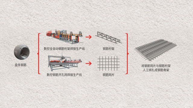 预制内外墙板、楼梯构件钢筋自动化加工流程 预制叠合板构件钢筋自动化加工流程