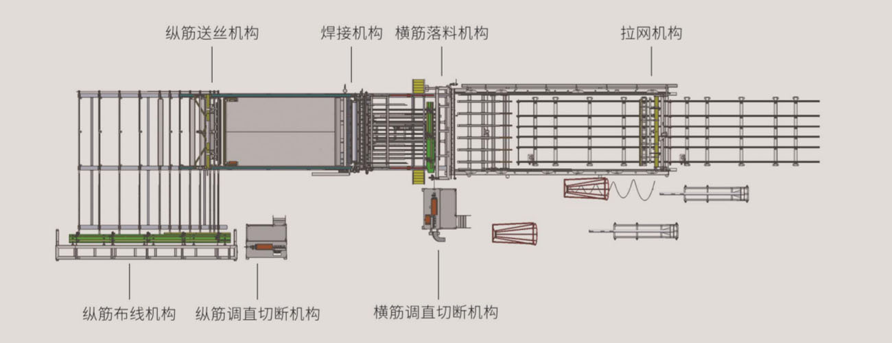 主筋直径6-12mm,腹杆直径4-7mm,节距195-205mm;机械摆杆式折弯性能稳定,启停式机械剪切设计;