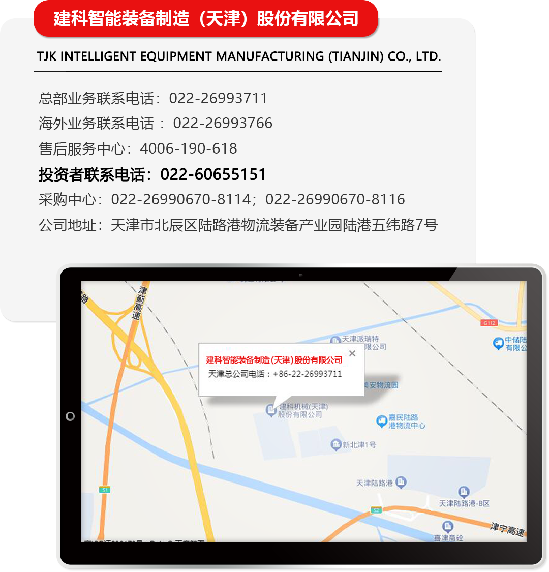 投资者电话联系电话:022-60655151