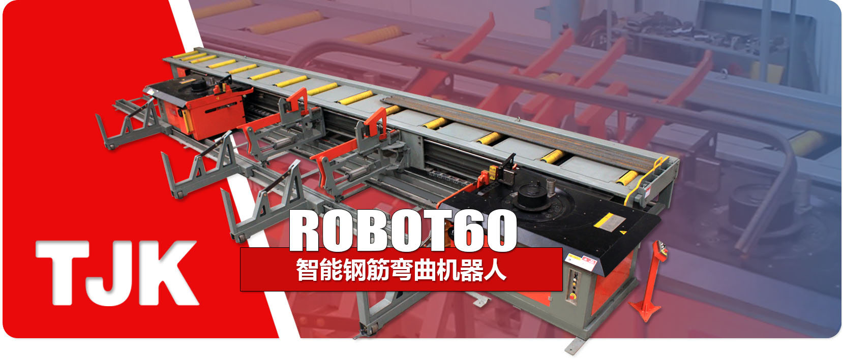 ROBOT60智能钢筋弯曲机器人可将定尺切断后的钢筋弯曲成正方形、矩形、板筋、 U形筋等不同形状的设备,可加工直径16-50的钢筋,自动化程度高,操作简便易行,尤 其适合于大直径、大半径的钢筋加工。
