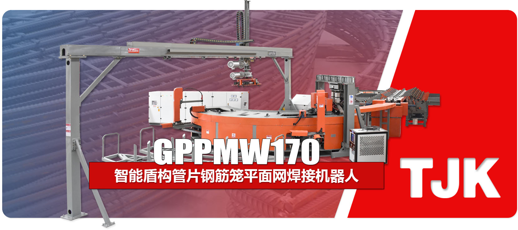 该设备主要应用在地铁、隧道等场合,用于盾构管片钢筋笼的单片网的加工,可自动完成直条钢筋弯弧、弯钩、输送、横筋和主筋的焊接以及主筋端头的拼焊,加工过程一次 成型,最大条件的保证网片成品的质量精度,并且较少网片生产环节中物料转运环节,提 高了生产效率。该设备的特点是速度快,精度高,一致性好,实用,可靠,非常受国内、 外客户的信赖与青睐,并且具有强大的任务储存能力,更换生产任务方便、快捷。